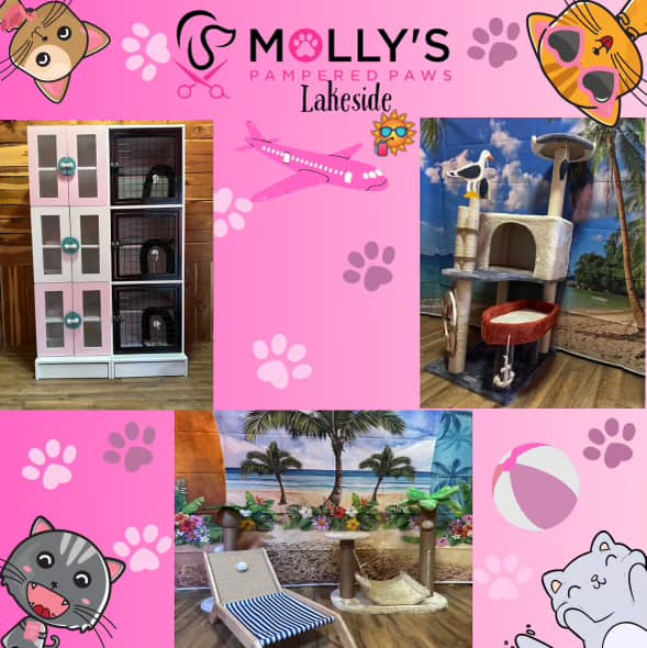 Large, highly insulated & QUIET Cat Lounge. Each condo has separate areas for sleep, play, eating, and potty.